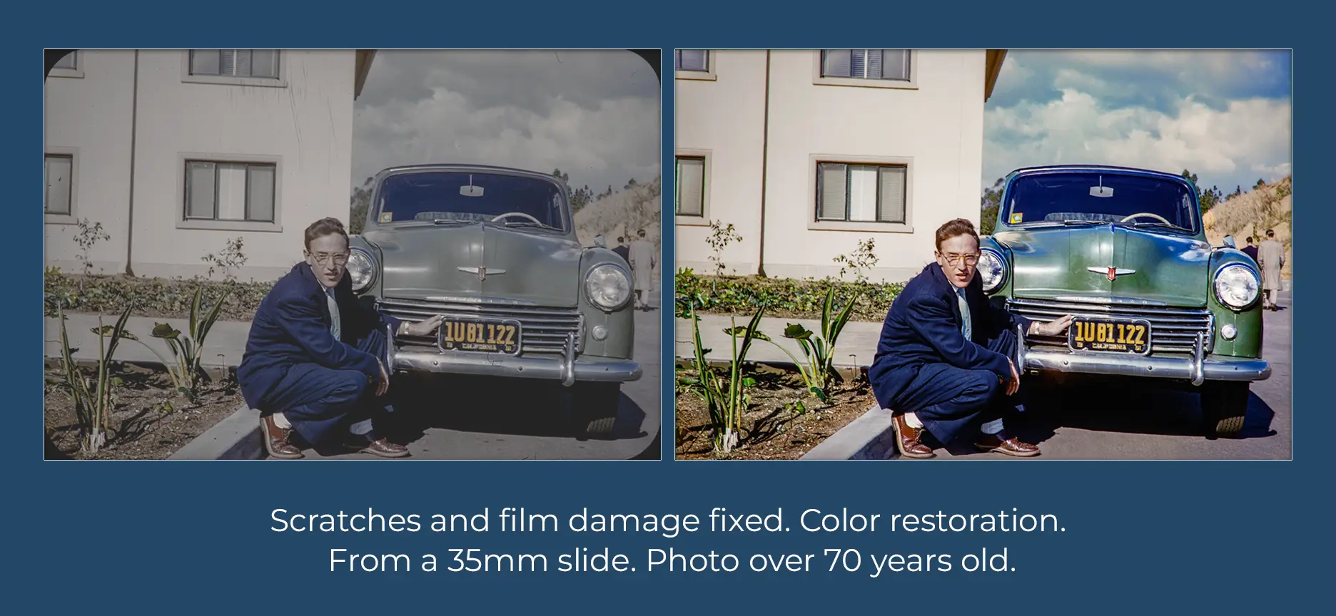 My father was also a passionate photographer, and he left behind more than 5,000 slides and 20,000 print photographs. I digitized them with the same patience, respect, and personal attention I’ll give yours.